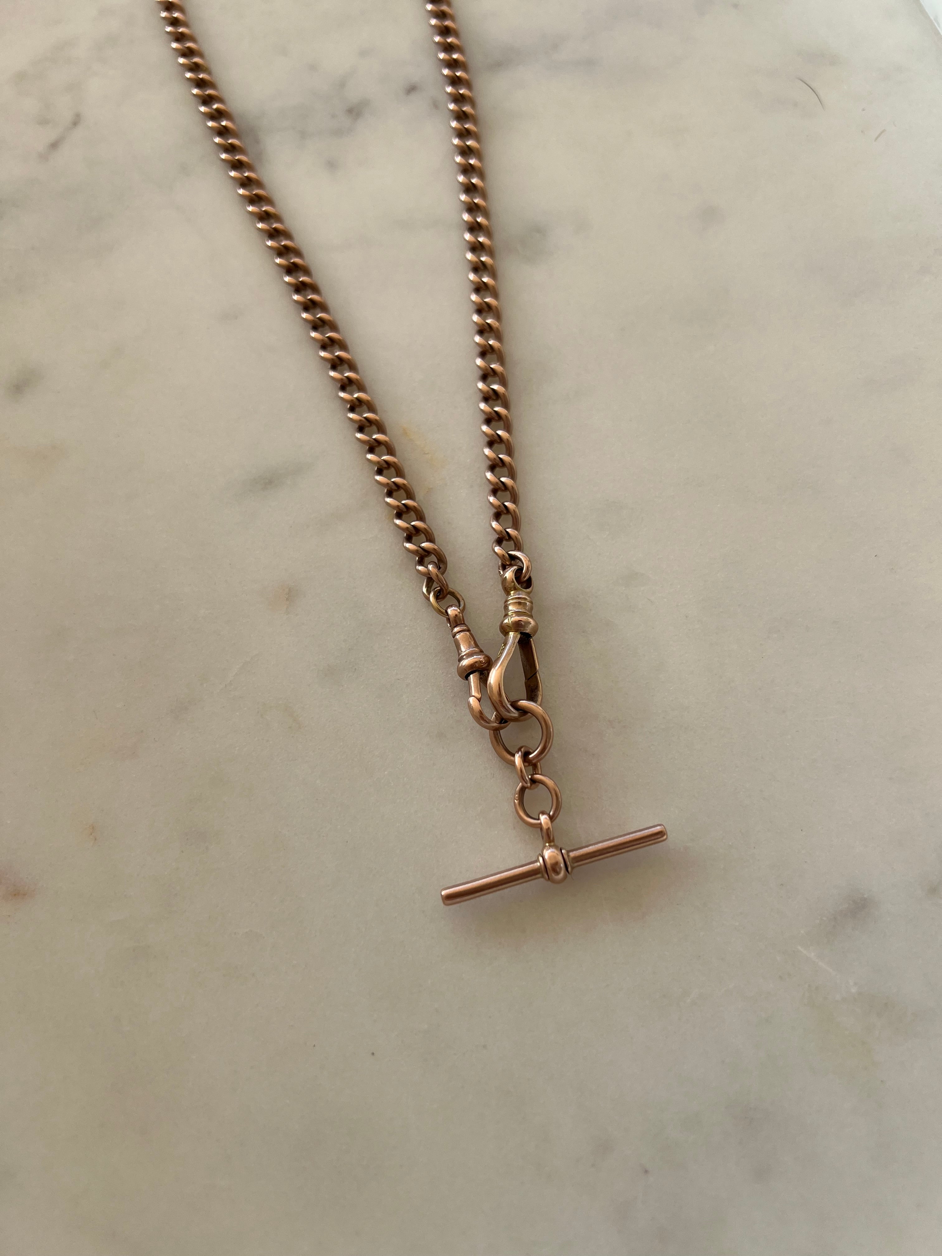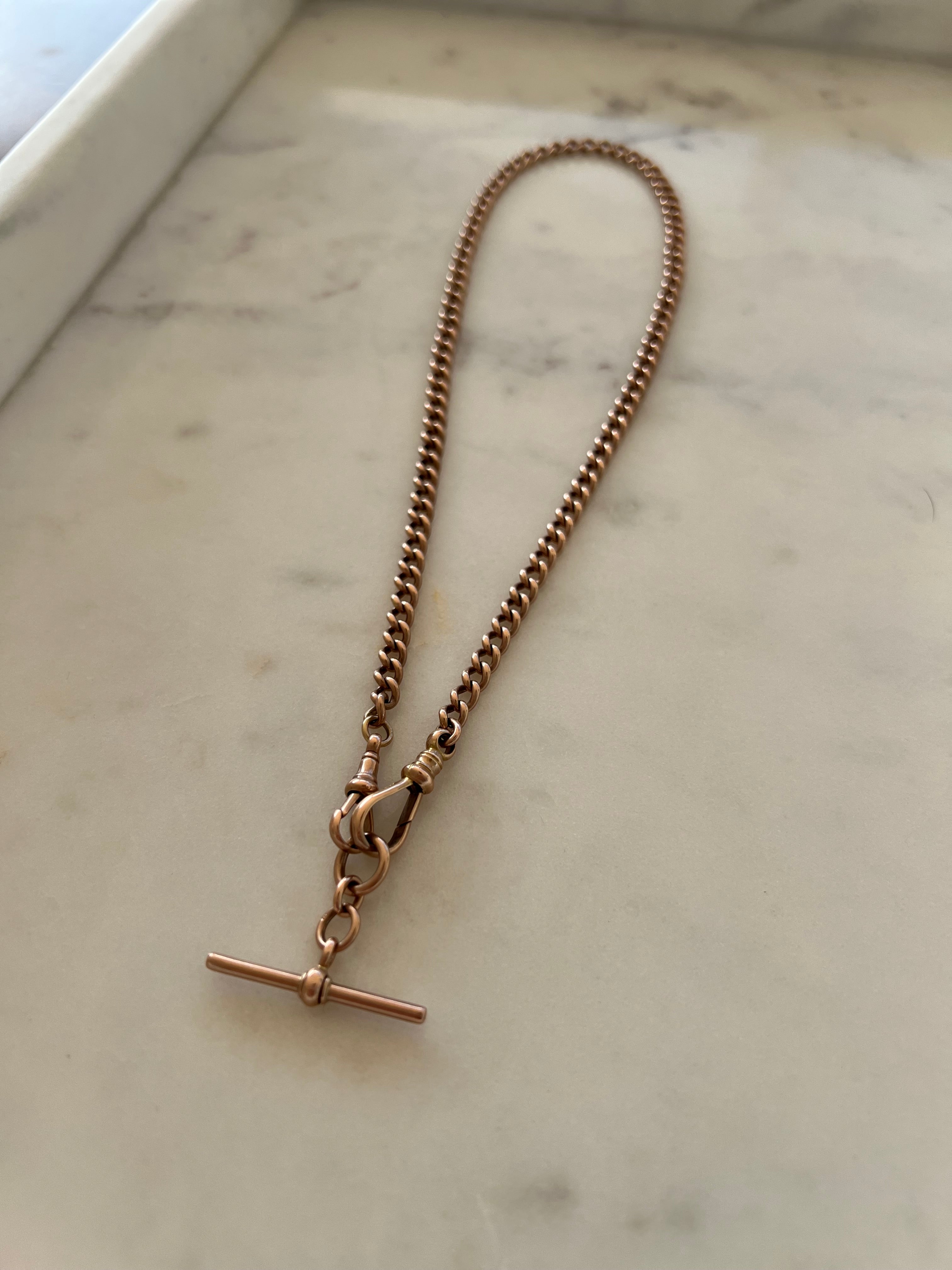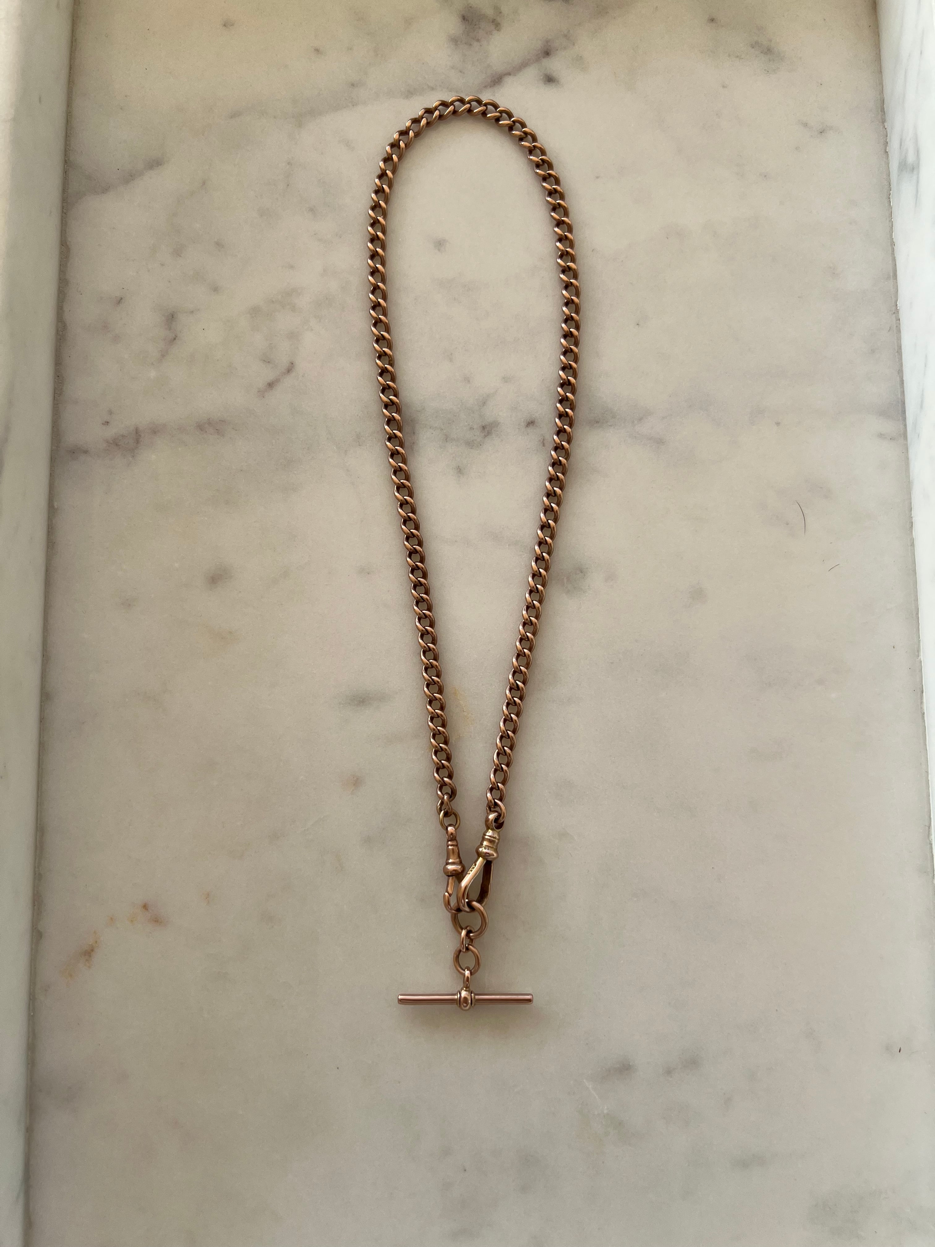 A finely made, antique single Albert curb link watch chain in 9ct rose gold with a fob (or t-bar).