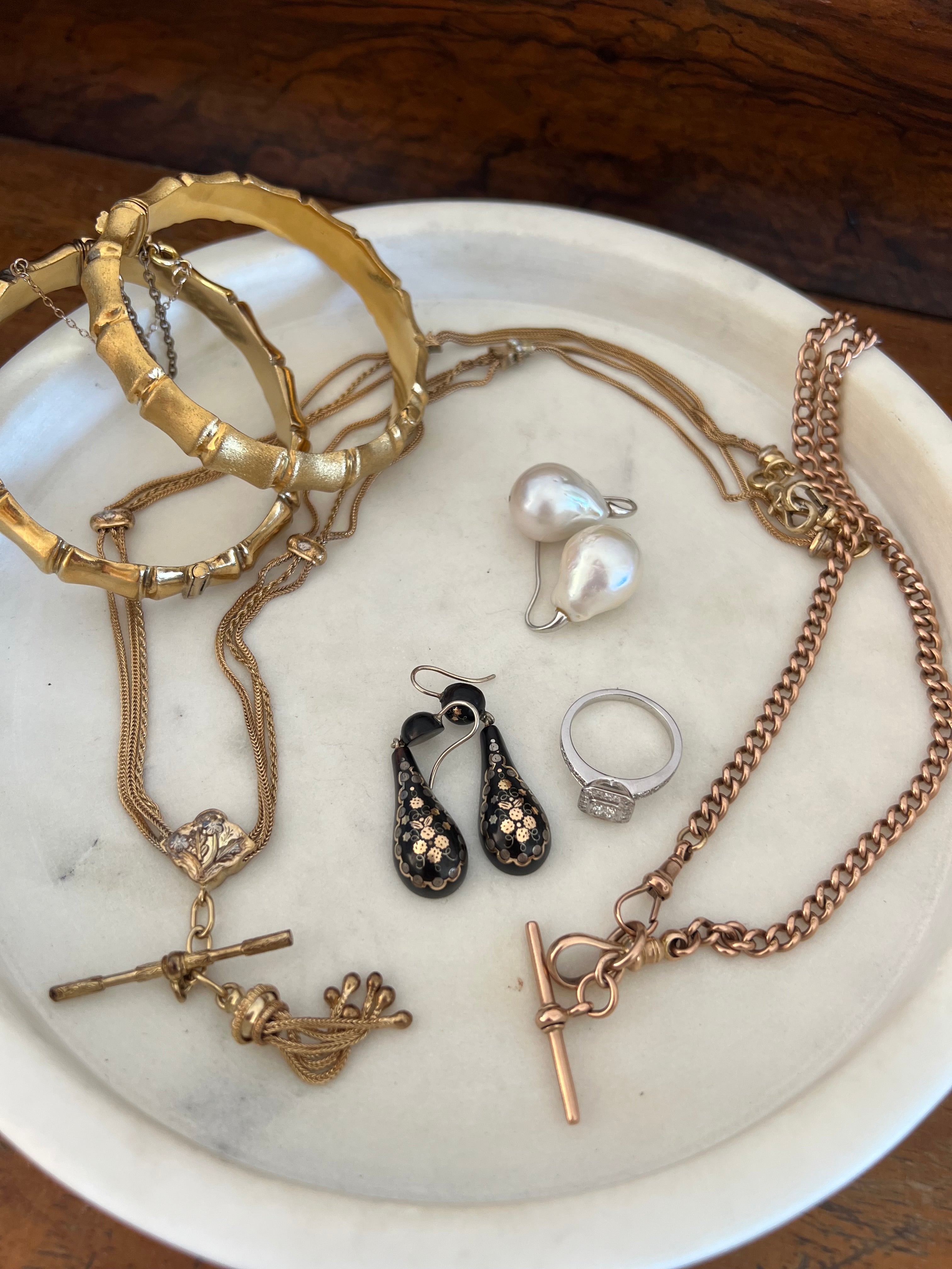 A beautiful antique watch chain, these are just getting harder and harder to find. She would look gorgeous layered with other necklaces or worn on her own.
