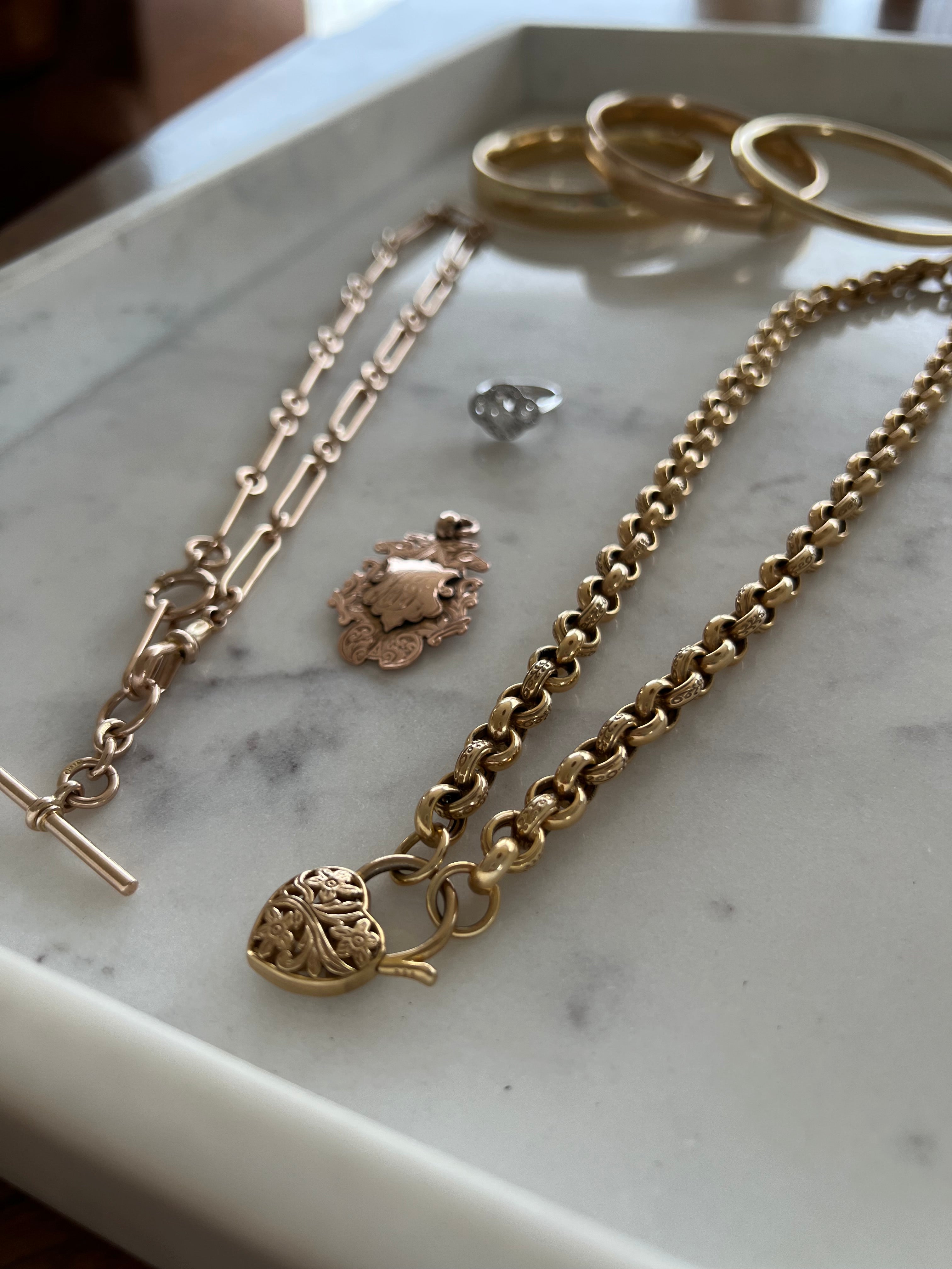 She is a beautiful rich yellow gold colour, a great chunky look, but relatively light and so easy to wear everyday. She is in excellent vintage condition with minimal visible wear. The padlock is nice and solid and closes securely, it is the perfect length at 47cm.