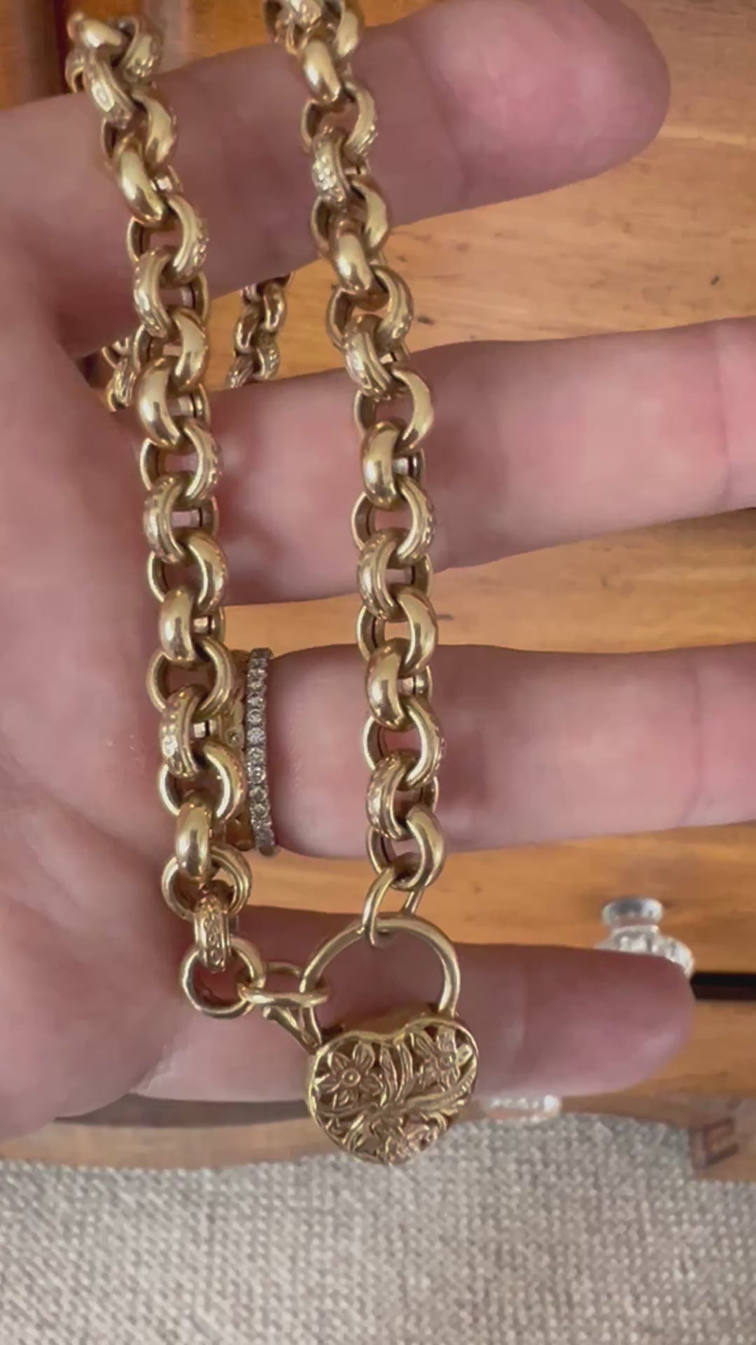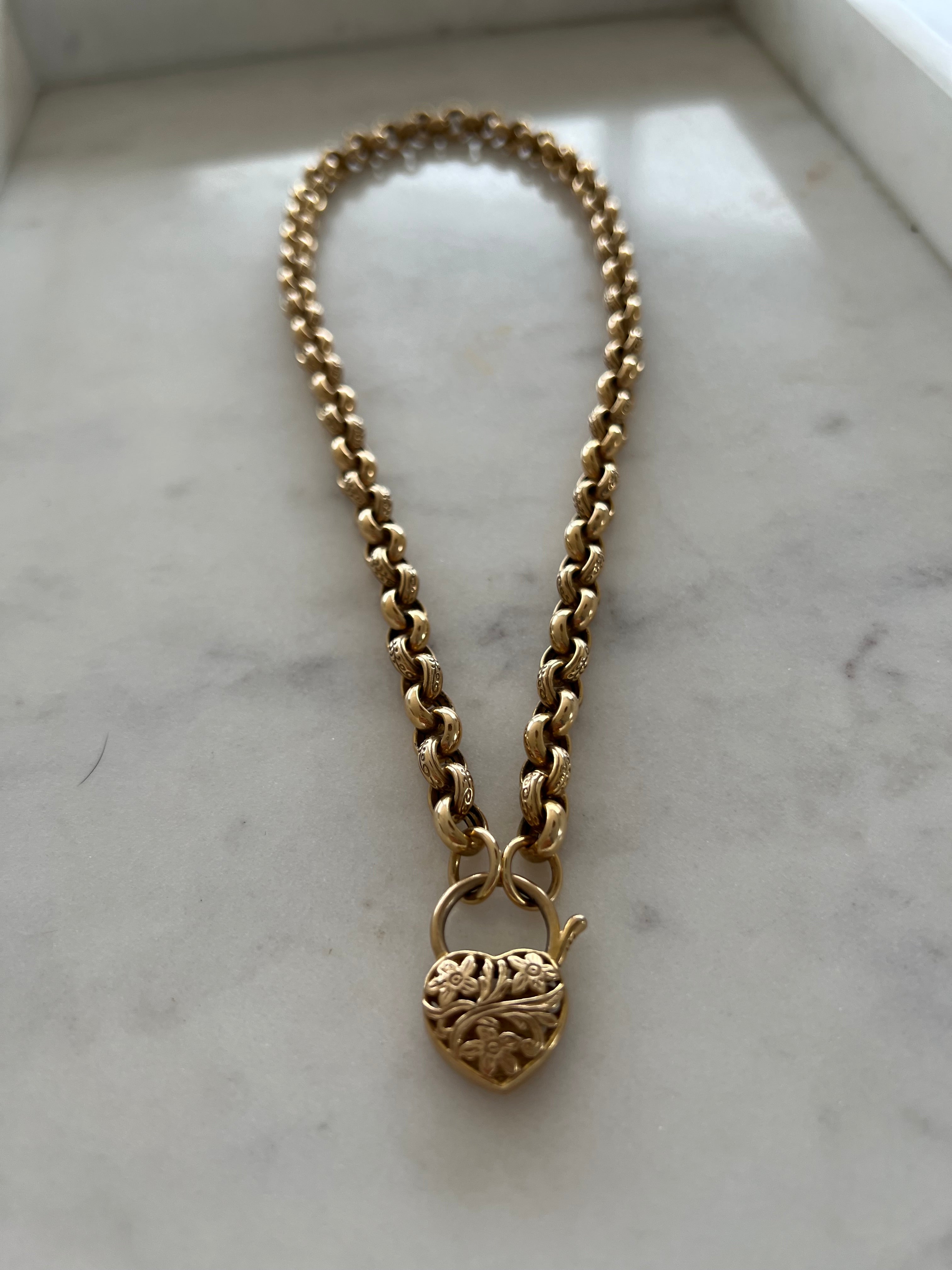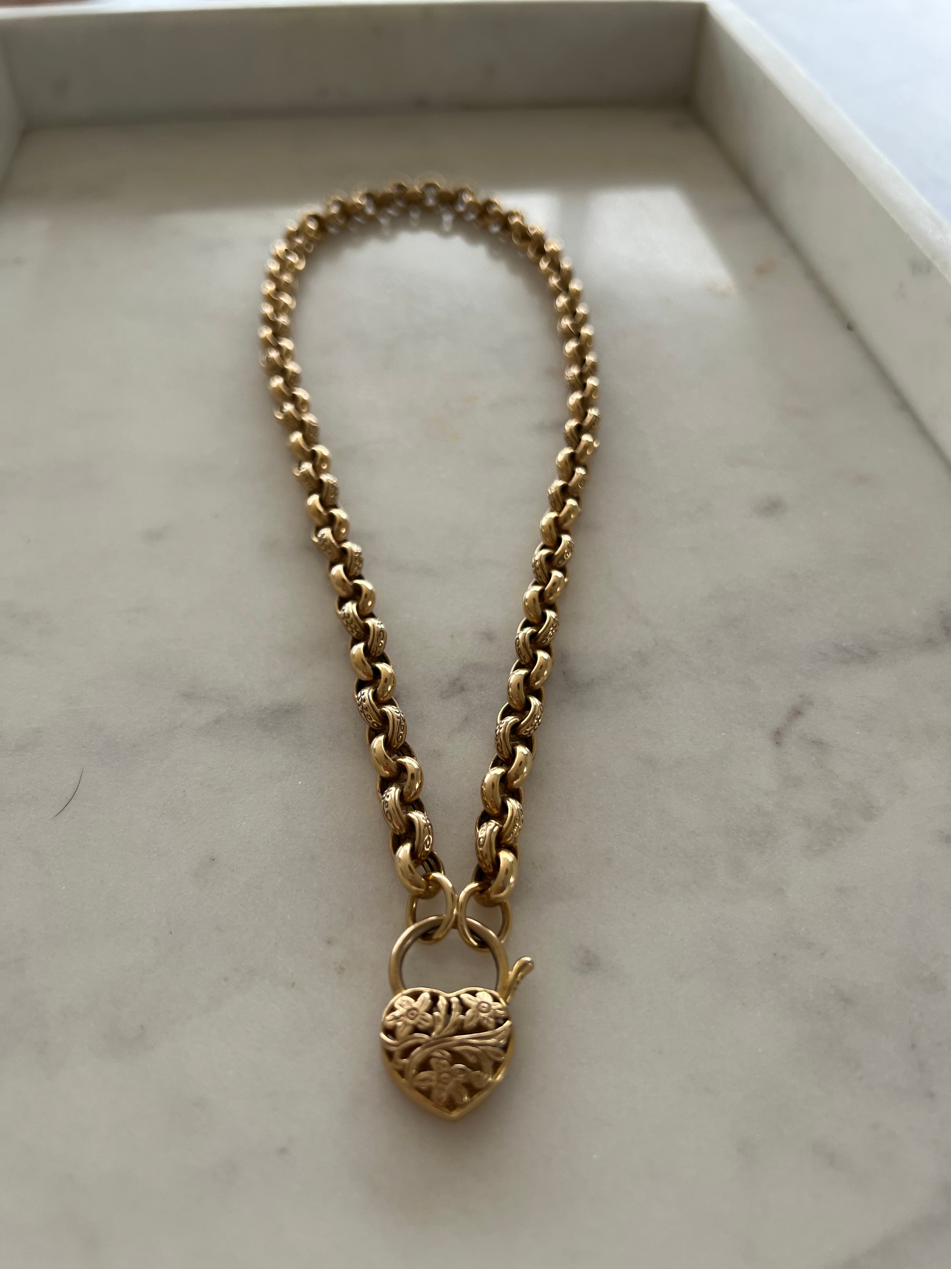 9ct Yellow Gold Vintage Italian Engraved Belcher Link Necklace with Padlock