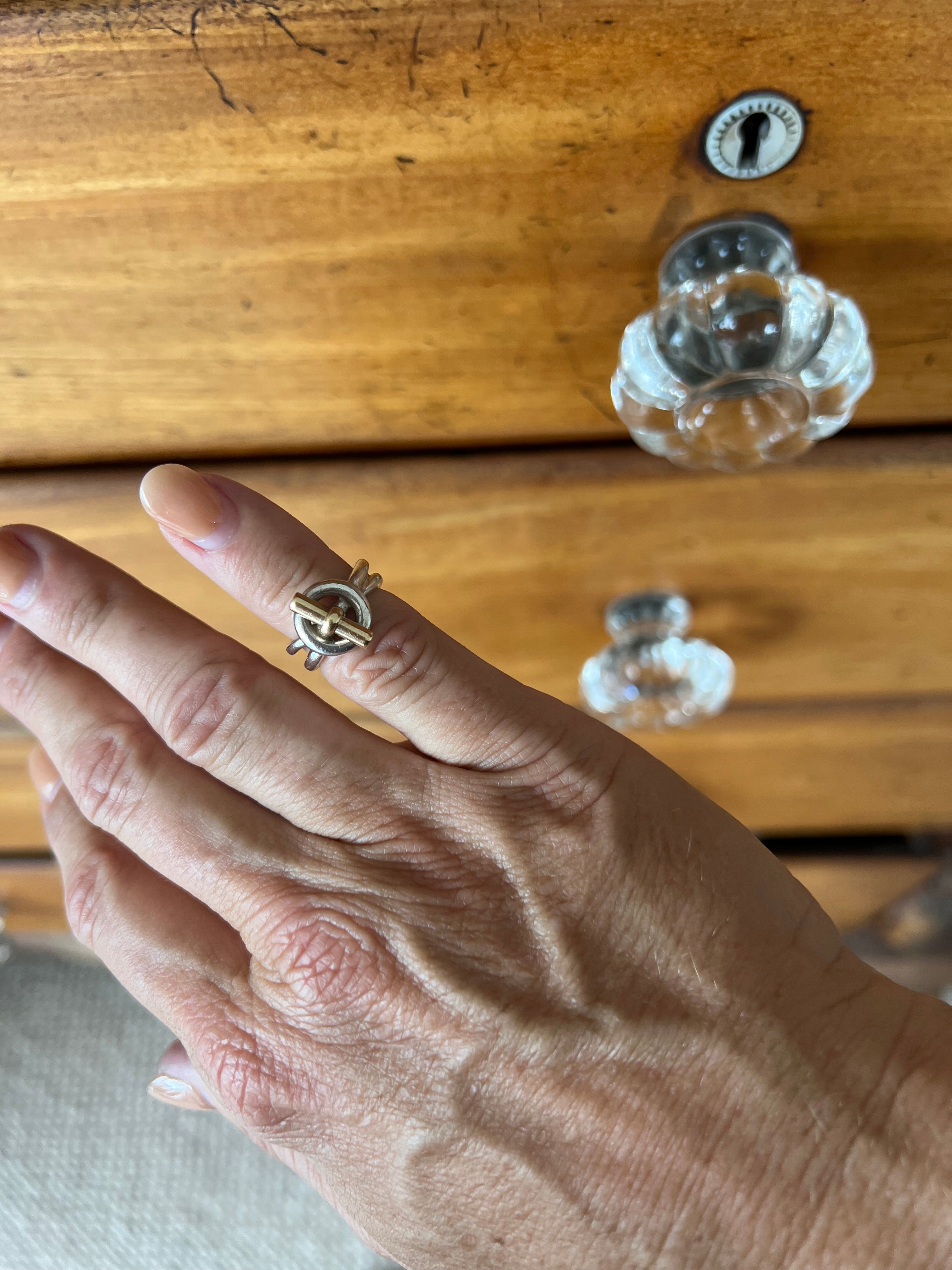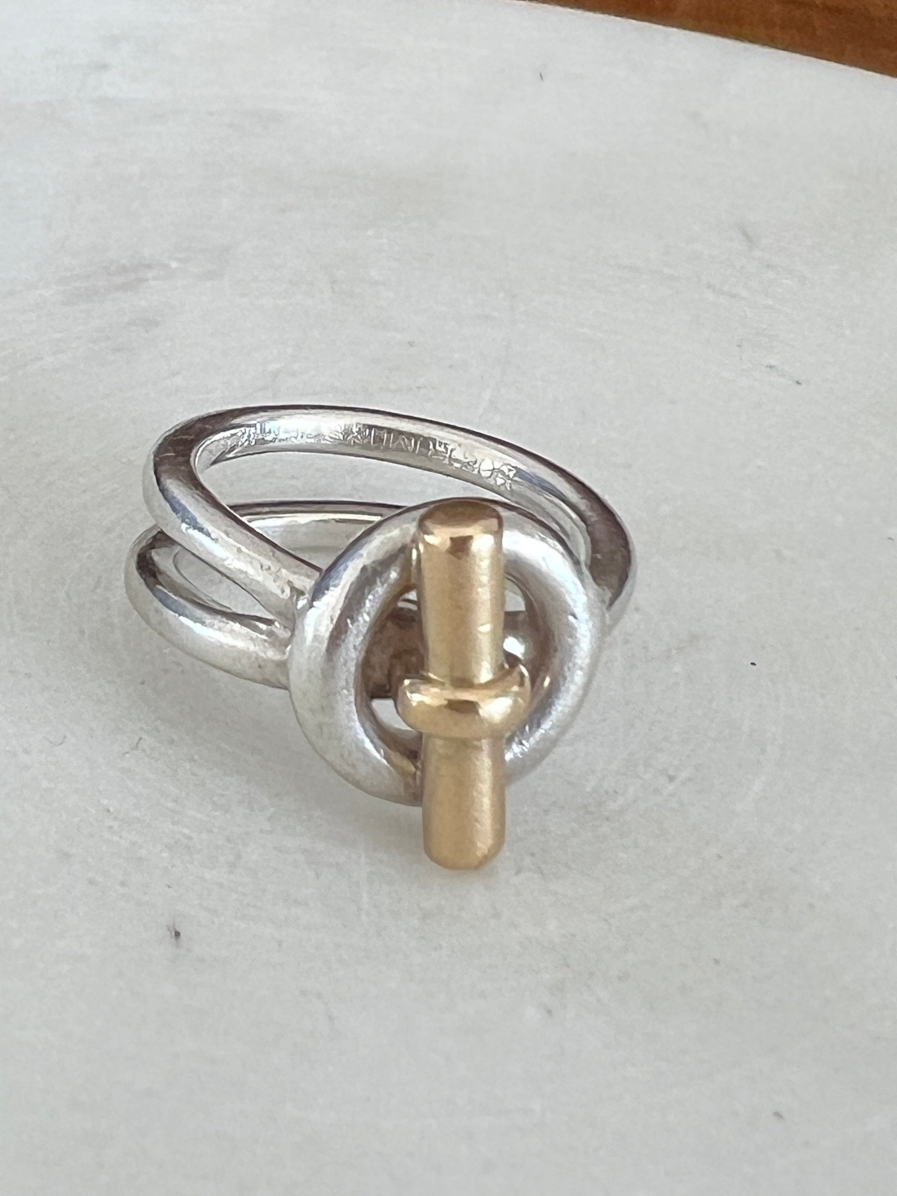 A very rare Hermes Échappée ring in sterling silver with an 18ct yellow gold toggle.