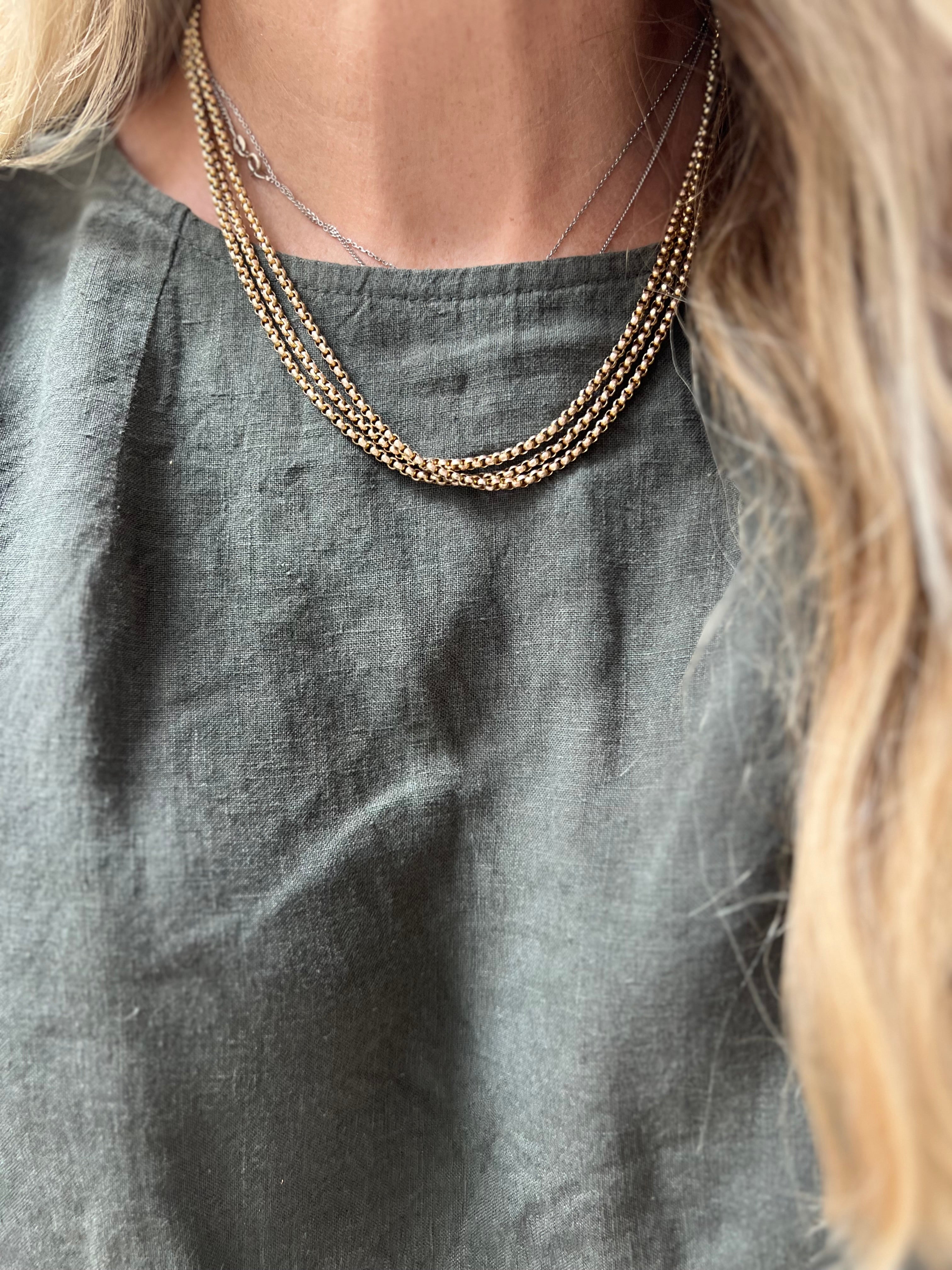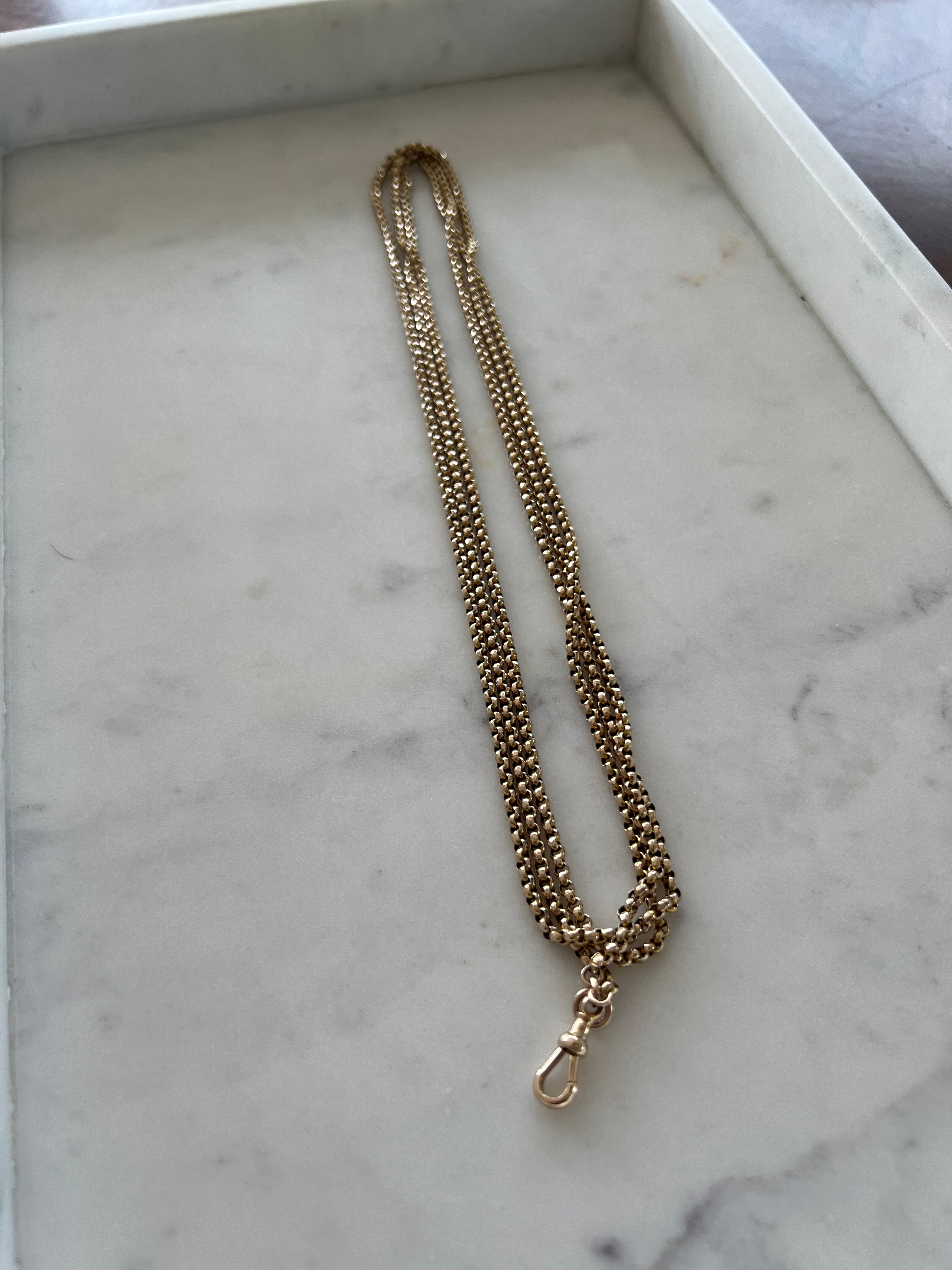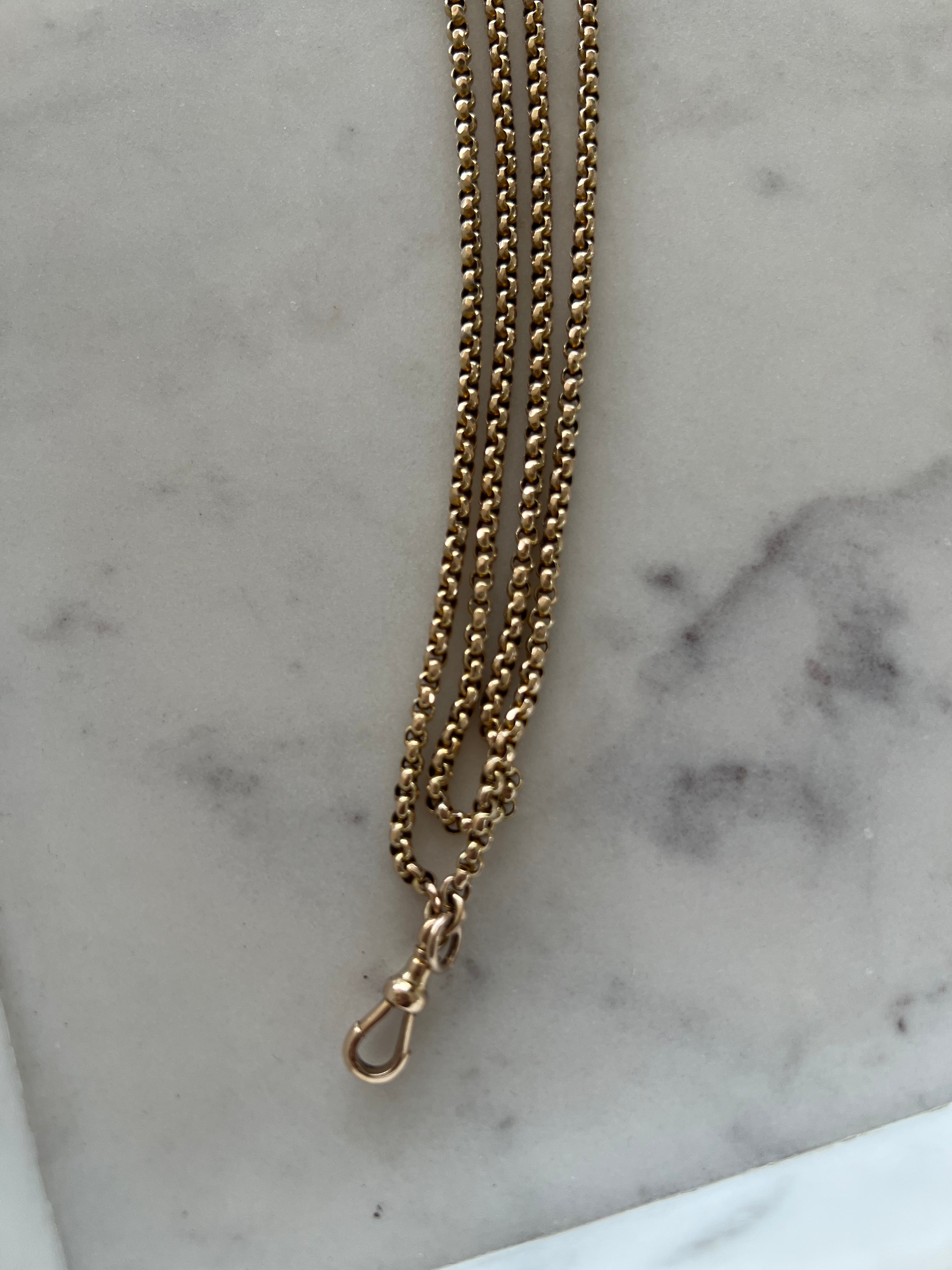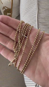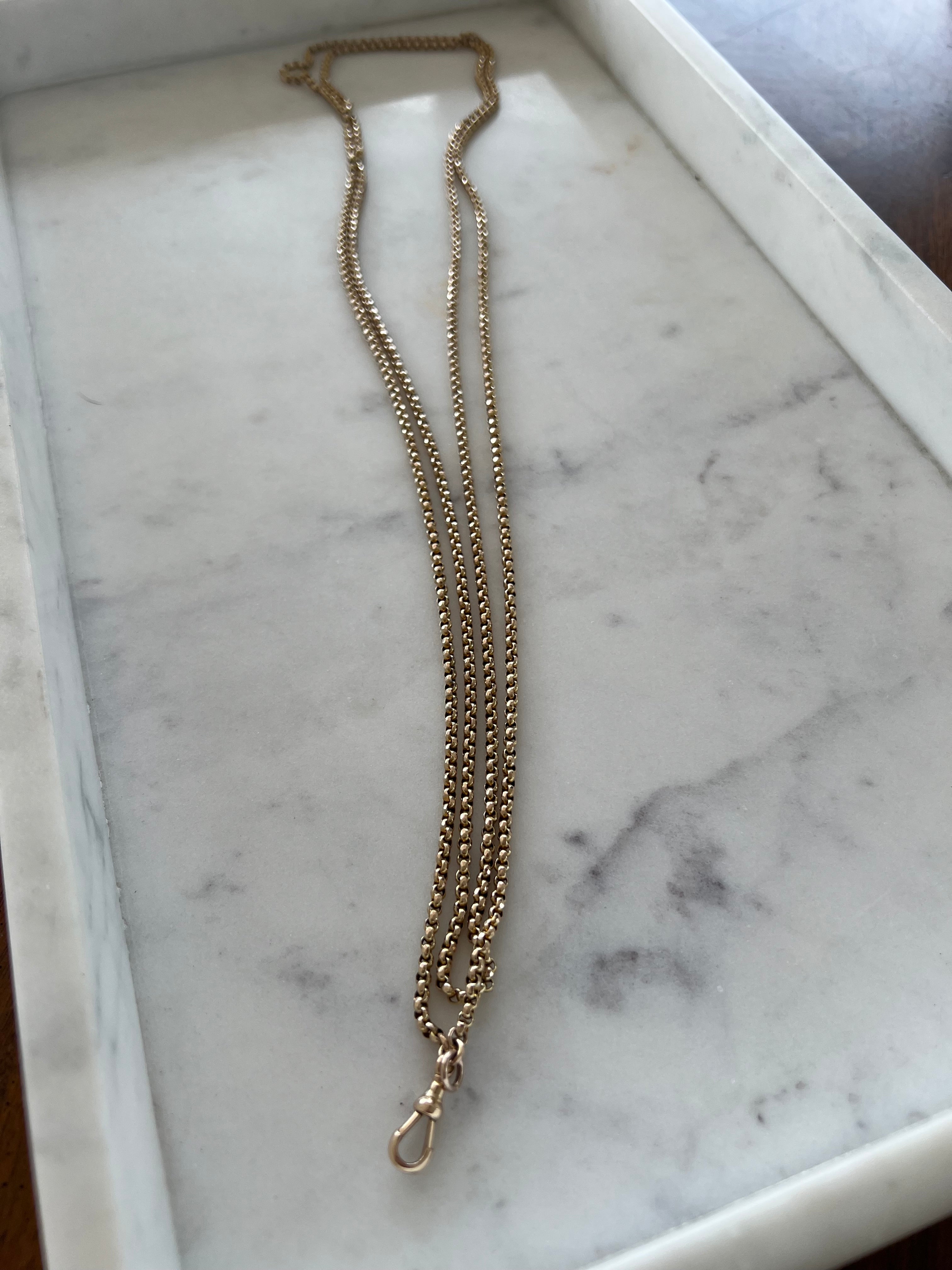 Wow! This is such a versatile chain at 152cm long it can be wrapped around multiple times and has a dog clip which you can attach a pendant or locket. It is the perfect length to layer with your other necklaces and gives a bit of detail and difference with the beautifully made faceted belcher link.