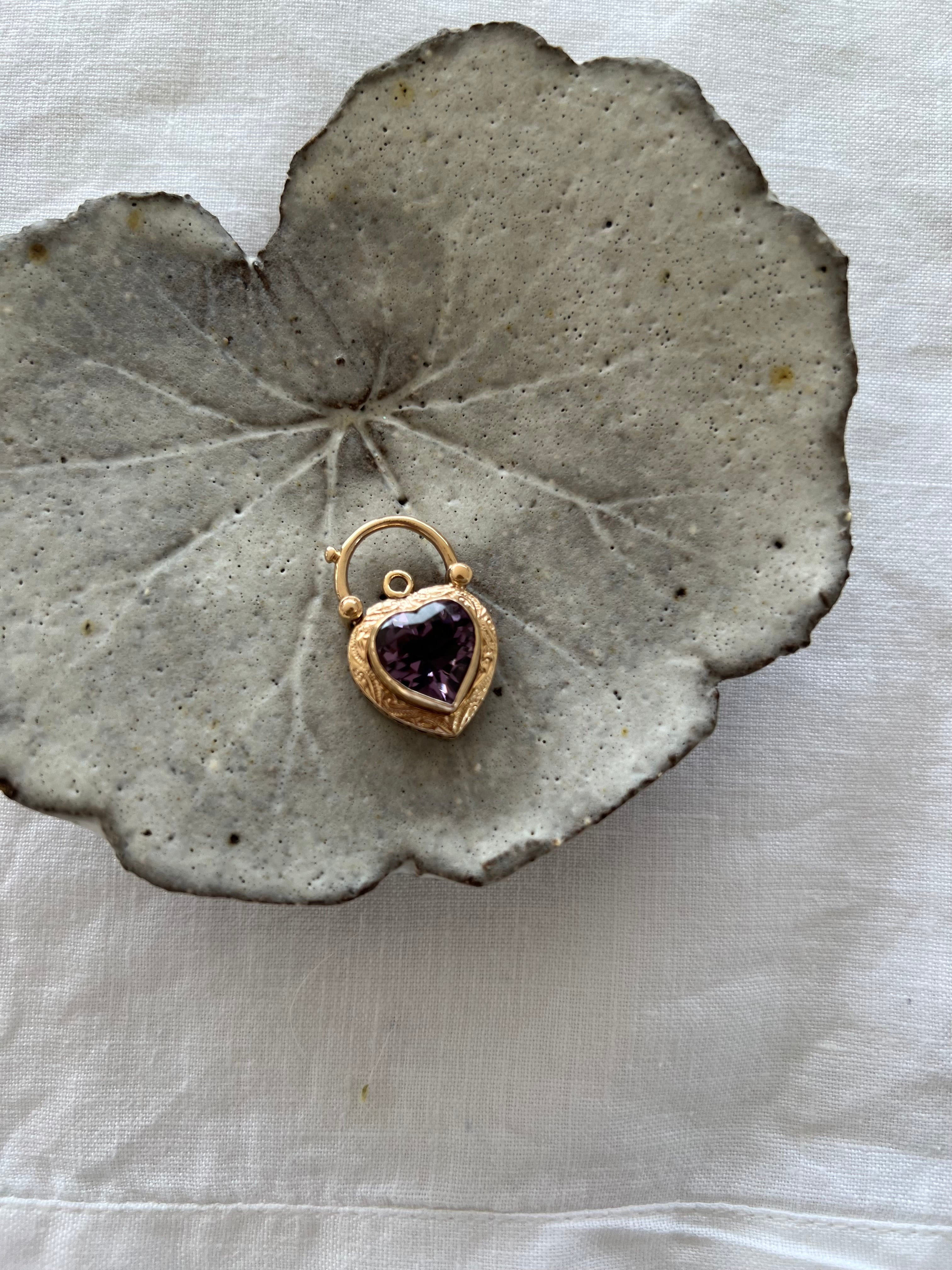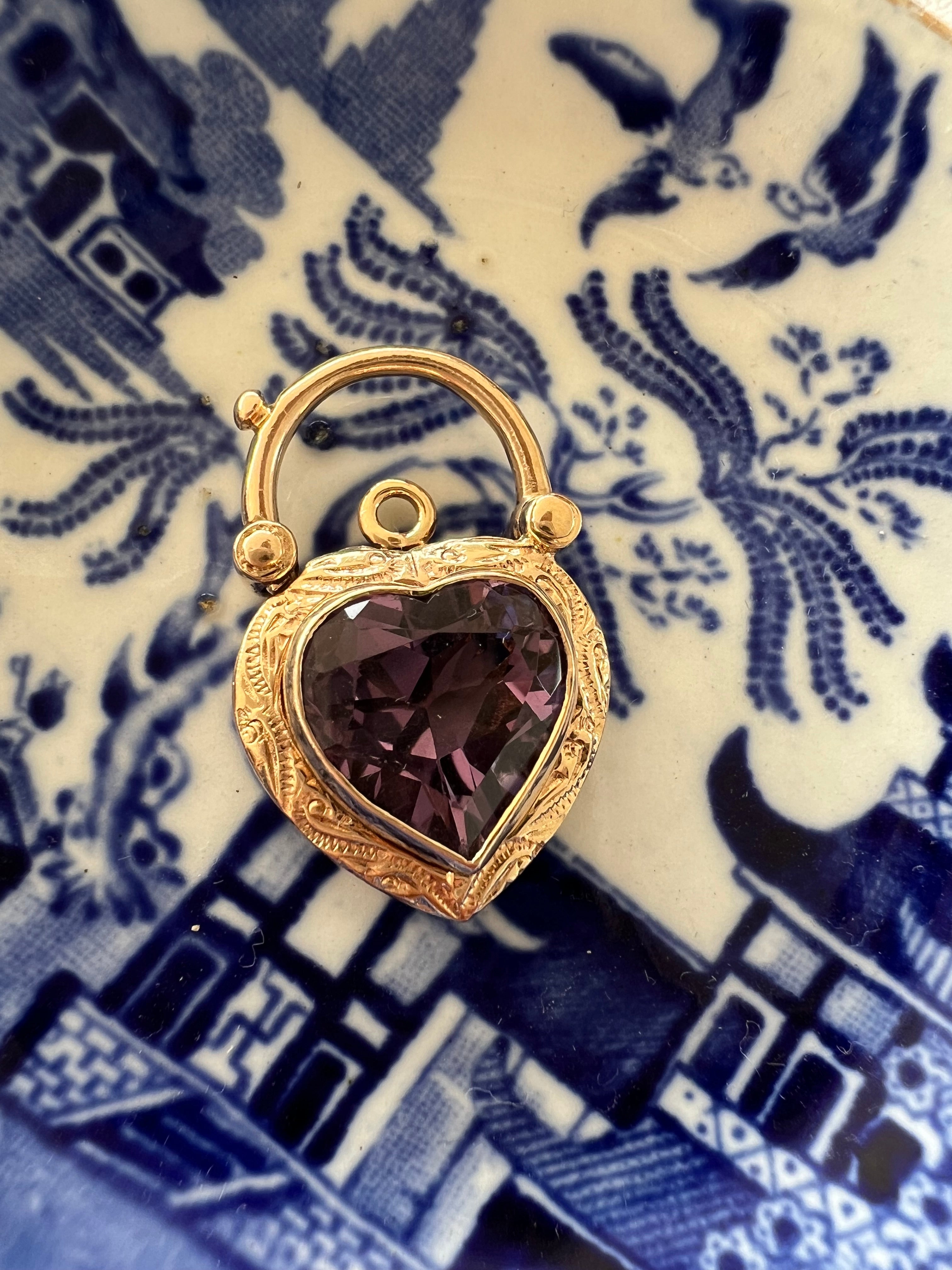 Vintage 9ct Rose Gold and Amethyst Heart Padlock