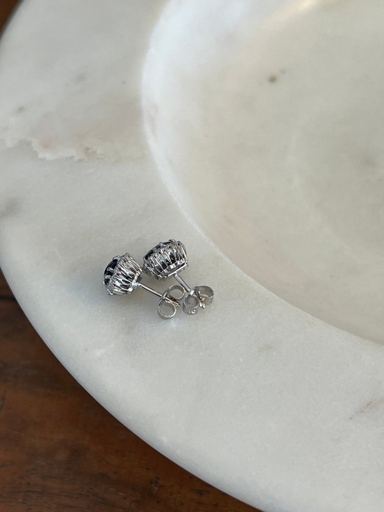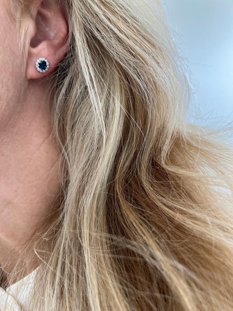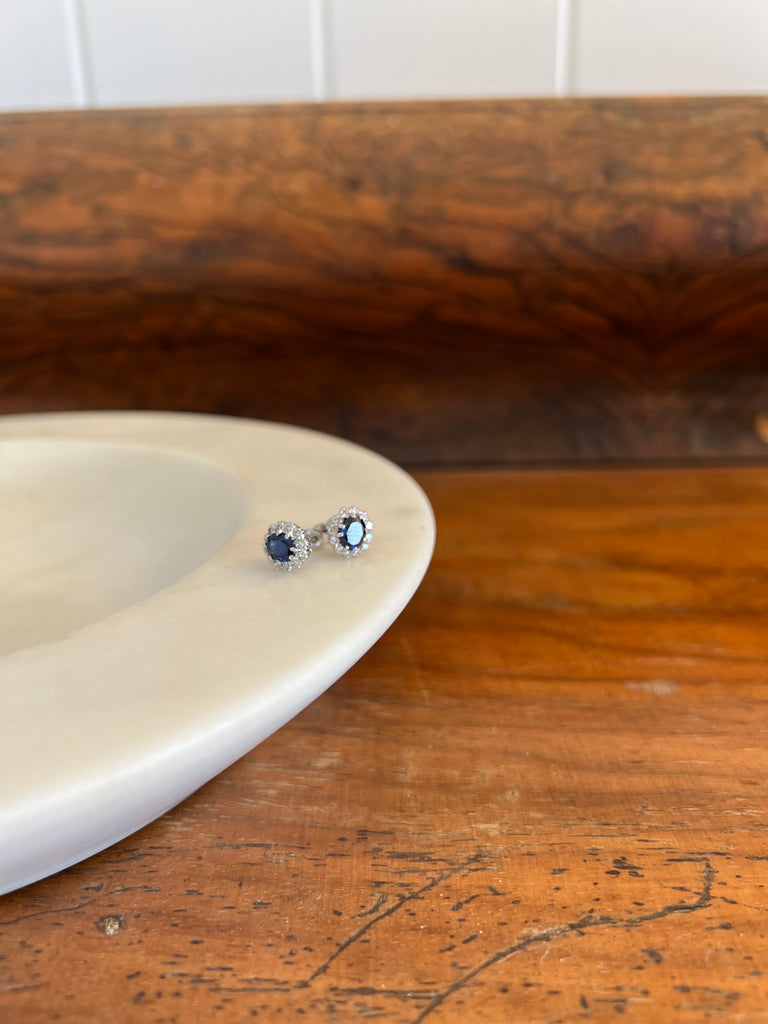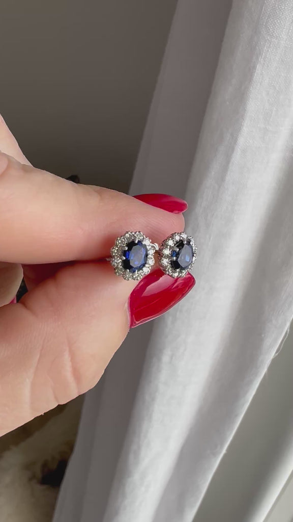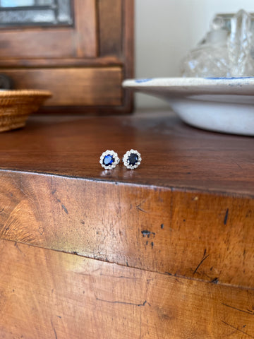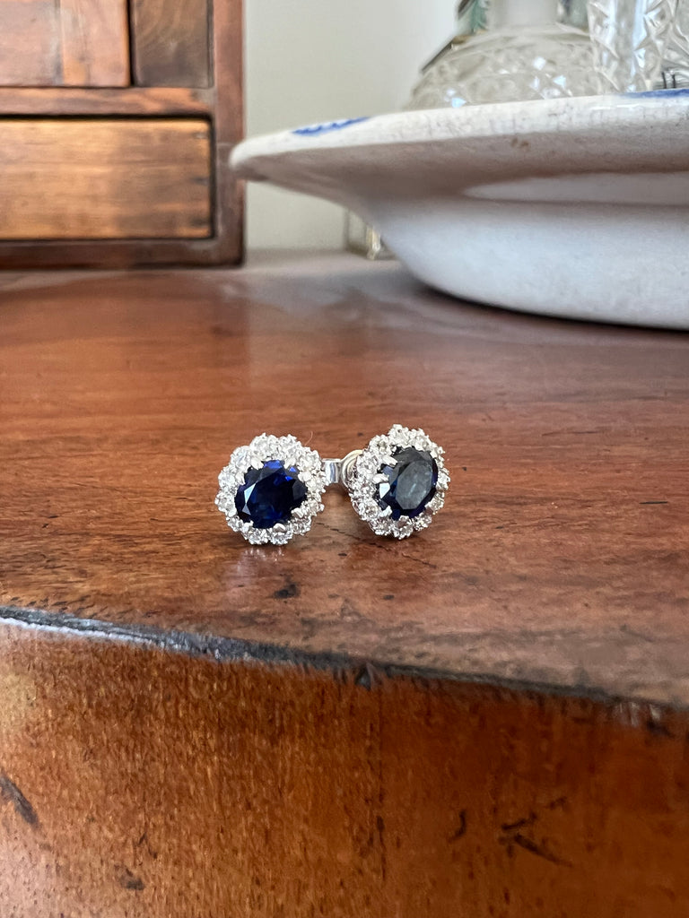 Vintage Sapphire and Diamond Cluster 18ct White Gold Earrings